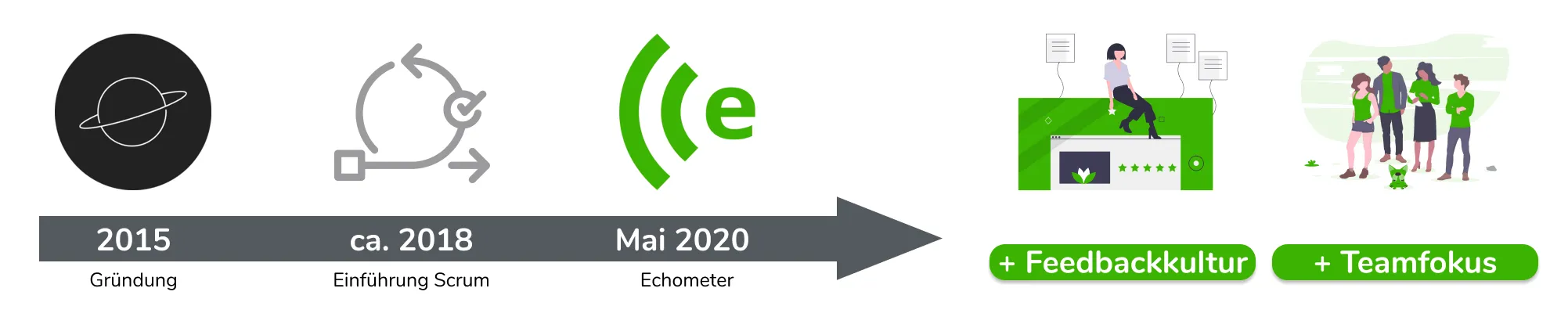 Weiterhin setzt Echometer den Fokus zunehmend auf das Unternehmen und die Unternehmenskultur. Vorher standen in unseren Retros vor allem Arbeitsabläufe und -weisen im Mittelpunkt. Durch Echometer haben wir angefangen, uns zusätzlich mehr auf das Unternehmen und unser Team zu fokussieren.