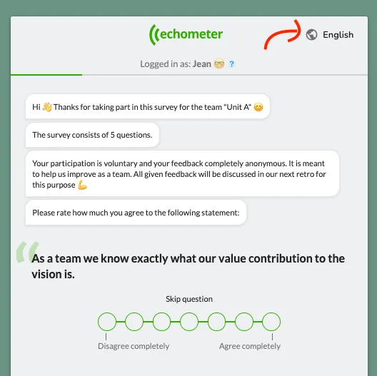 Um die Sprache in der Umfrage zu wechseln, klicke einfach oben rechts auf die Sprache: