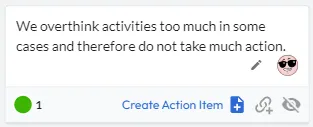After that, we talk about the answers we voted for. While we then talk about the individual points, we develop measures to improve the work in the team. These are the so-called “Action Items”, which we want to implement in the Sprint Cycle and review again in the next retrospective. As you can see in the picture, you can attach the Action Items directly to the discussion points in our tool.